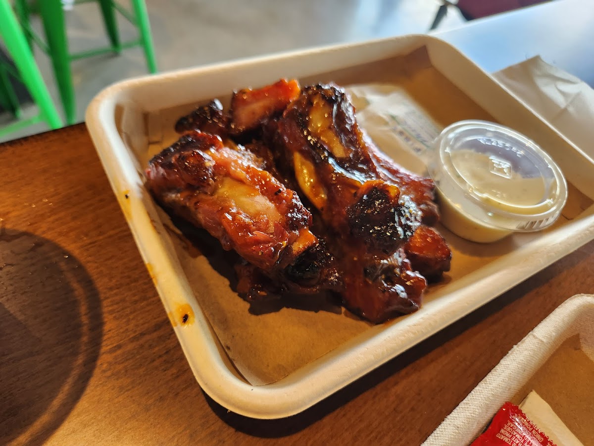 If I could, I'd give this place 10 stars! We came here because it was pet friendly. Not many doggies were there. They were showing up when we were leaving. So I ordered a few things to try out. OMG, everything was sooooo delicious!! Everything was great! The ribs (garlic habanero on side) had crisp edges due to being fried and i fell in love. The Totchos with ground beef floored us (in a good way), a must have!! Cheese dip with brisket, BLT all good!! Even though we prefer mayo based coleslaw, this was vinegar based but it had a unique flavor and slightly creamy. My taste buds were dancing trying to figure out what was in the slaw. Overall I rate this place a TEN!! Thumbs up.
