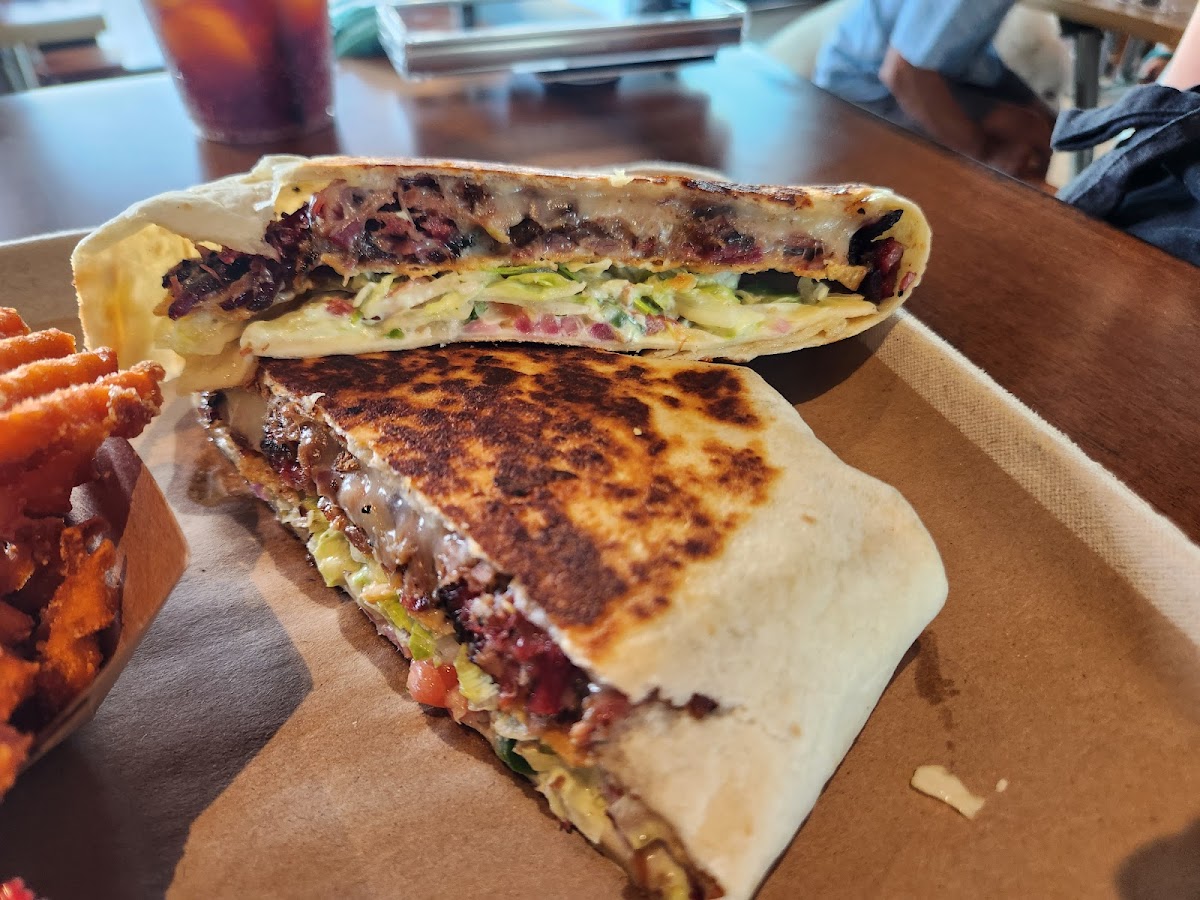 Cool spot with decent bar food, TVs for sports. Pickle ball courts and games to play. I got beef brisket Philly with tots, it was pretty good.